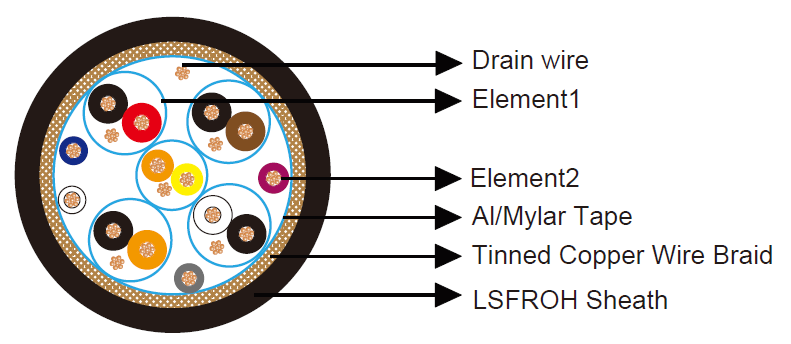 Element 1:5PR×30AWG(Cu/Foam Skin/Individual Al-mylar Screen+ TC Drain Wire)